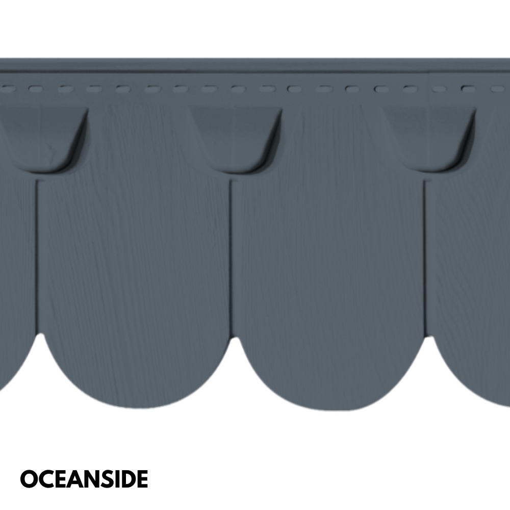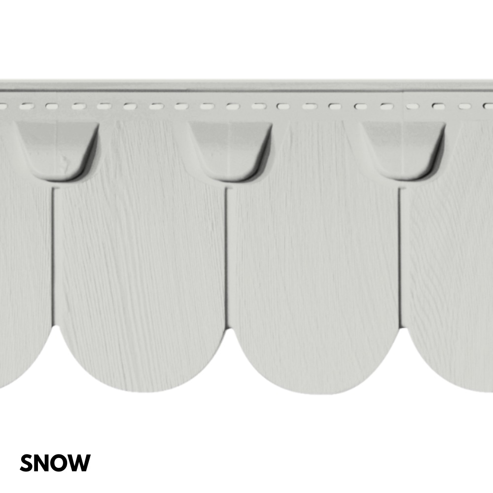 Portsmouth™ Half Round Cedar Shingles by Westlake Royal bring a timeless, decorative accent to gables, dormers, and other architectural features. Their scalloped edges replicate the look of traditional hand-cut cedar, creating depth and visual interest that enhances curb appeal. Crafted from durable, weather-resistant vinyl, these shingles are designed to withstand fading, cracking, and harsh conditions while maintaining their vibrant color and texture. With a wide range of color options, Portsmouth™ Half Round Cedar Shingles let homeowners personalize their exterior while enjoying a low-maintenance siding solution that delivers lasting beauty.
